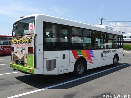 | 備考 | 17年7月に松本に導入された中古エルガミオノンステです。元事業者は松戸新京成バス。中扉窓にオレンジ色の文字が入っているのが特徴。19年春までに長野・松本所属の路線車の多くが中扉脇へのNBAマーク貼り付けを実施。19年秋以降に定員表記が貼られ、20年春にアルピコ交通100周年ステッカーが貼られました。また、20年4月に専修大学広告が貼られGIロゴ消滅(20年11月頃専修大学広告解除)。21年4月に専修大学広告が入り11月頃に解除。22年4月頃にアルピコ100周年ステッカーが剥がされ、22年4月前半のうちに専修大学広告が貼られました。21年から22年6月まで中型車限定となった上高地線代行バスでも運用されていました。22年9月末よりリアに鈴与の広告が入りました(10月初旬に03460号車にも施工)。22年10月末に専修大学広告解除。23年4月1日より松本市近郊の路線バスが松本市を運行主体とする公設民営バス「ぐるっとまつもとバス」になり、マークが貼られました。23年4月下旬に専修大学広告施工(秋に解除)。24年4月に専修大学広告施工。