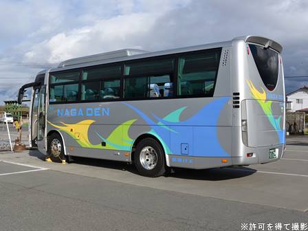 備考 | 観光用のエアロエースMMです。登録順から、3月頃の導入だと思われます。正式名称は「エアロエース ショートタイプMM」です。後方2列サロン仕様で補助席なし。長電バスの貸切用エアロエースでは側面窓内に掲出される事が殆どだったNBAマークが21年前半に全車扉脇に貼り直されました。 | |||