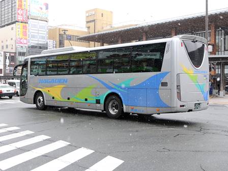 備考 | 貸切用の19年式エアロエースです。フロントマスク変更後のいわゆる「令和顔」のモデルとしては長電初となります。9月末頃に導入されました。車体のNAGADENロゴのフォントが高速車と同様のものに変更されました。1688号車と同じくフロントとリアのオーナメントを装備しています。フルカラーLED式行灯を装備しており、冬季の急行運用時に行先を表示するなど、柔軟に運用できるようになっています。長電バスの貸切用エアロエースでは側面窓内に掲出される事が殆どだったNBAマークが21年前半に全車扉脇に貼り直されました。 | |||