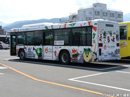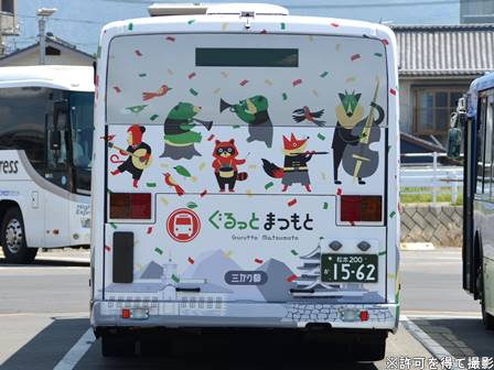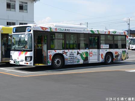 | 備考 | 24年1月に松本に導入された現行ブルーリボンです。製造は23年末。白色LED式行先表示器を装備しています。側面LED表示器の位置は長野の最近の新車と同じく戸袋窓内。導入時から三ガク都の全面ラッピングを施工されており、顔以外アルピコカラーになっていないと思われます。ちなみに、松本に大型路線車の新車が導入されるのは実に15年ぶりです。定員表記は何故か「補助席 0」まで入っている貸切車仕様。排ガス規制ステッカーはラッピングの下にあるため判別不可能。 | |||||