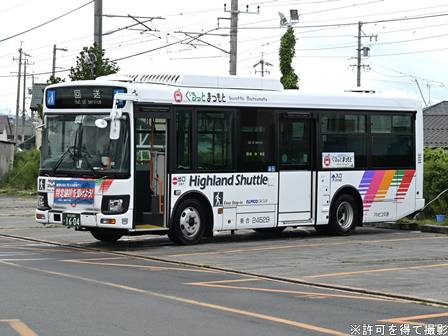 | 備考 | 24年12月に導入された中型の新車。当初よりぐるっとまつもとのロゴ入りです。定員表記の用紙がちょっと大きいような気がします(気のせいかもしれません)。型式末尾5の世代からトランスミッションはAMTが廃止となり6ATのみになっています。 | |||||