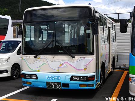 | 備考 | スワンバス専用のエアロミディです。川バス・長電バスのぐるりん号用エアロミディとほぼ同型。諏訪湖を2時間近く掛けて1周するというハードなダイヤ(笑 18年頃までにヘッドライトのロービームのみLED化されました。尚、19年4月以降もNBAマークは貼られていない模様。19年12月25日よりスワンバス(外回り線)の運行が諏訪交通へ移管され、専用車のポンチョ(19619号車)と共に予備車として移籍している模様。 | |||||