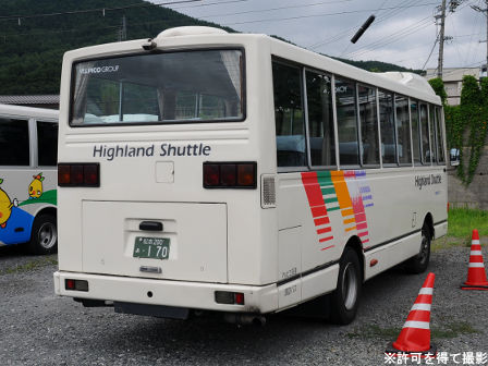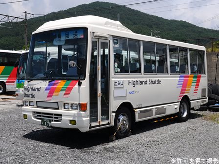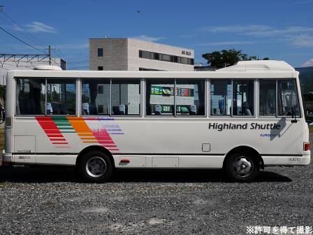 | 備考 | 諏訪バスはアルピコ交通統合前から小型車もある程度所有しています。この仕様は92年のMCで登場し、95年にリエッセへFMCされるまで製造されています。元JR東海バスですが、自家用との事です。この車はスワンバスの前掛けを付けています。12年にはNBAマークが入った模様です。18年のうちにヘッドライトのロービームのみLED化されています。19年前半に引退。 | |||||