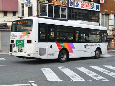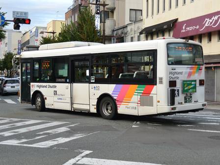 | 備考 | 金井山線の廃止代替路線化に伴い導入されたレインボーU。エルガミオと同じくノンステップ仕様です。同時導入のこのグループ3台は基本的に金井山線専用ですが、この車両は日中に日赤線の片道1本のバイト運用があります。 13年8月頃、非公式側に松代総合病院のWB間ラッピングが入りました。16年4月に入り、川中島バス社名が消されてアルピコ交通社名1段表記になっています(他にも多数の車両が同様の変更を受けています)。16〜18年の間にヘッドライトが白色バルブ化されていますが時期不明。19年4月には長野支社のほぼ全ての路線車両にNBAマークが貼られ、8月後半に定員表示が掲出されました。20年春にアルピコ交通100周年ステッカーが貼られ、22年5〜6月頃に剥がされました。24年7月に松代総合病院のラッピング解除。 | |||||