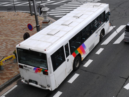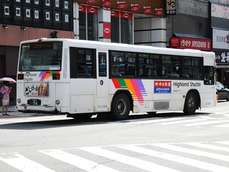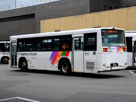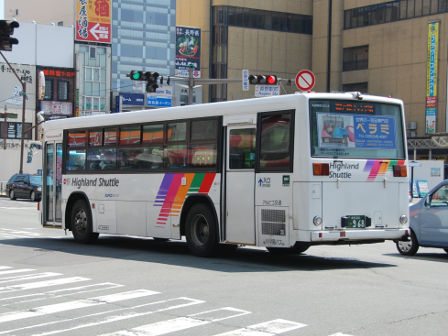 | 備考 | 09年夏の転入車です。この年の導入車からついにKC-代となりました。車体や窓の構造がU-代と変化しています。12年3〜6月のうちにNBAマークが入りました。 12年8月頃にリア窓広告が入りましたが、15年春までに撤去されています。16年春までに社名が1段表記に変更されていますが、公式側は「川中島バス」を消しただけでなく、「アルピコ交通」社名も場所が移動しています。当初長野所属でしたが、16年の中旬以降に戸隠に転属しています。16年12月までにリア広告枠が設置されています。18年1月中旬以降に公式側広告枠が追加され、同年4月頃までにヘッドライトのロービームのみLED化されています。19年4月には長野支社のほぼ全ての路線車両にNBAマークが貼られましたが、この車は元々あったものが剥がされずダブルNBAマーク状態です。同年8月後半に定員表示が掲出されました。20年春にアルピコ交通100周年ステッカーが貼られ、22年春頃に剥がされました。また、詳細時期不明ですがリアのライセンス灯がナンバー左右から上部に変更されています。22年8月に引退。 | |||||