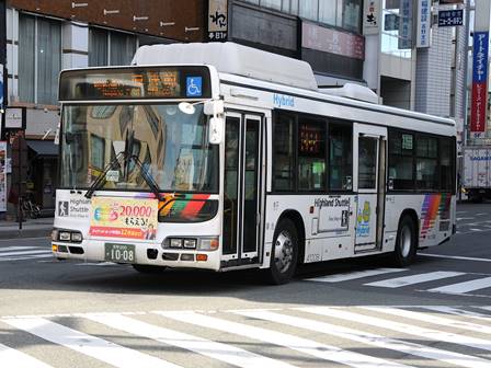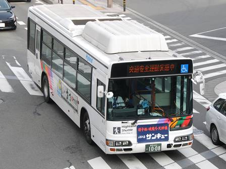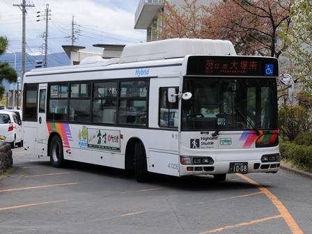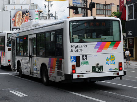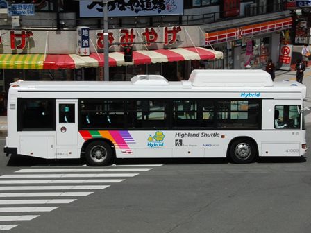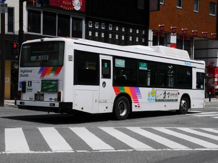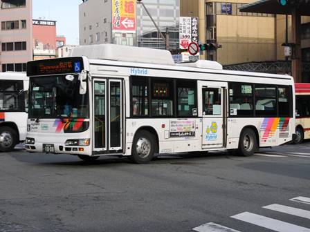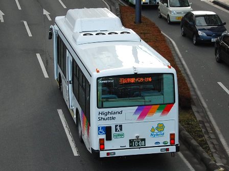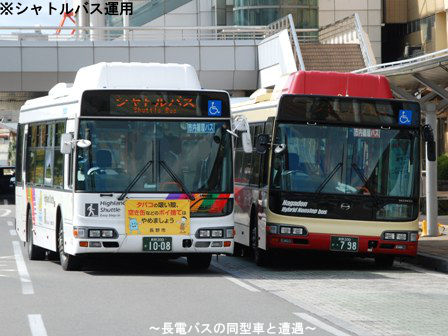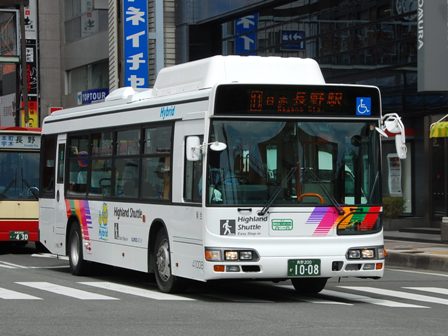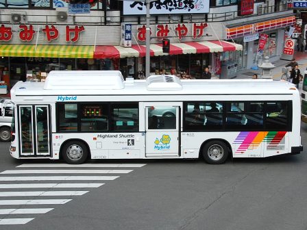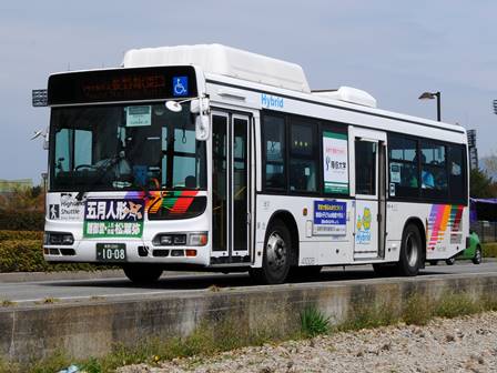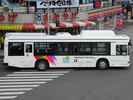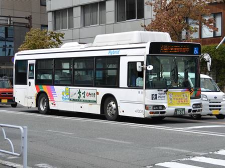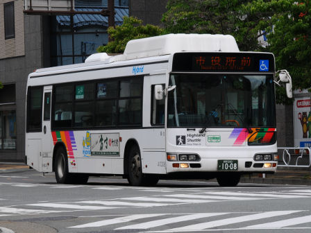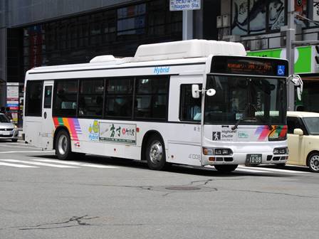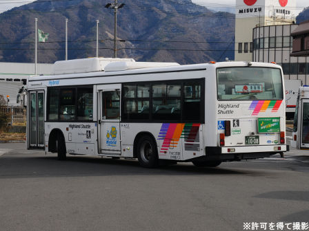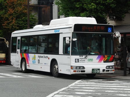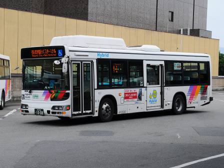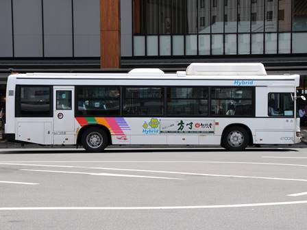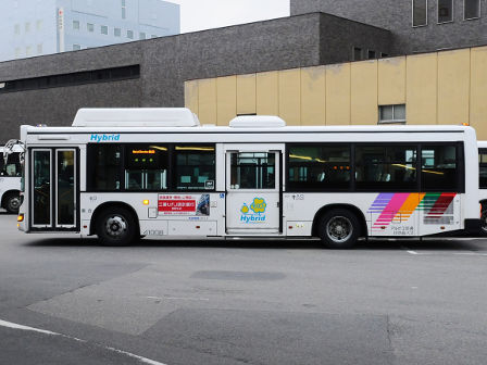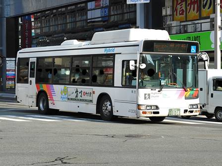 | 備考 | 当時最新のブルーリボンシティハイブリッドです。ワンステのHIMRはありましたが、ノンステは初となります。運用開始は1月26日ですが09年式です。 10年2月に「Hybrid」ロゴが幕板に増えました。12年2〜5月のうちにNBAマークが入りました。15年に入って非公式側に広告枠が設置されました。16年初旬までにリア広告枠が追加されています。続けて16年3月上旬に公式側広告(シールタイプ)も追加。この際、GIロゴが部分的に消されています。16年4月に入り、川中島バス社名が消されてアルピコ交通社名1段表記になっています(他にも多数の車両が同様の変更を受けています)。18年初旬までに公式側の広告シールが撤去され、広告枠に変更されています。18年春までにヘッドライトのロービームのみLED化されています。19年4月に長野支社のほぼ全ての車両にNBAマークが貼られた際に貼り付け済みだったこの車は貼り付け位置が変更された他、専修大学広告も貼られています(19年秋に解除)。同年8月後半に定員表示が掲出され、11月に専修大学広告が剥がされました。20年4月頃に専修大学広告(戸袋窓タイプ)が貼られ、同時期にアルピコ交通100周年ステッカーが貼られました。専修大学広告は20年11月に解除。21年4月後半に専修大学広告が入りました(21年11月までに解除)。22年4月にアルピコ100周年ステッカーが剥がされ、同月下旬に専修大学広告を施工、11月までに解除されています。23年4月下旬に専修大学広告を施工(23年11月後半に解除)。23年12月にリア窓広告が入りました。24年5月頃までに10396号車(元41007号車)から中部大学の戸袋縦帯広告を継承(デザインは刷新)しましたが、24年秋頃に引退。新デザインの中部大学の広告は05490号車に引き継がれました。