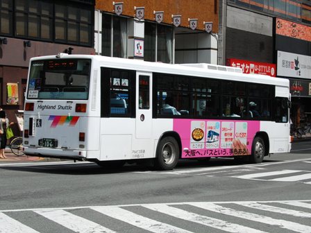 | 備考 | 10年の山陽からの転入車です。ワンステなので窓が大きく開放的です。エンジンは前後扉仕様と同じく高出力タイプ。導入自体は10年末ですが11年1月中旬に運用開始したとみられます。当初より非公式側には高速バス広告が入っています。松電のHIMR車に入っているのと同様のタイプです。また、「うしろのり あとばらい」表示はこれまでのプレート式ではなくステッカーとなっています。12月2〜4月のうちにNBAマークが追加されました。16年4月に入り、川中島バス社名が消されてアルピコ交通社名1段表記になっています(他にも多数の車両が同様の変更を受けています)。16年12月までにリア広告枠が設置されています。17年5月頃にヘッドライトのロービームのみLED化されています。19年4月には長野支社のほぼ全ての路線車両にNBAマークが貼られ、8月後半に定員表示が掲出されました。20年春にアルピコ交通100周年ステッカーを貼り付け、22年4月に剥がされました。 | |||||
