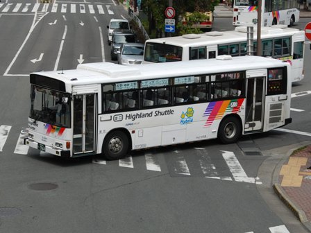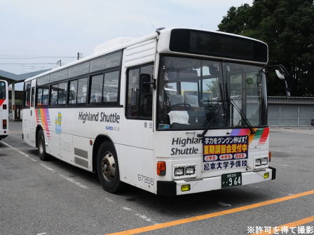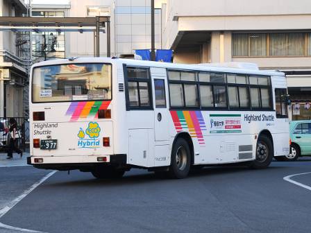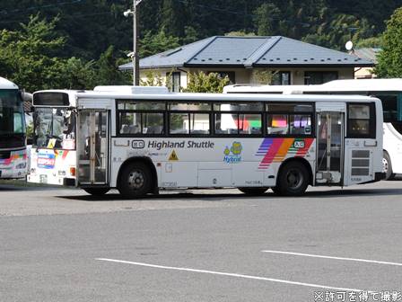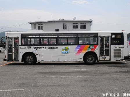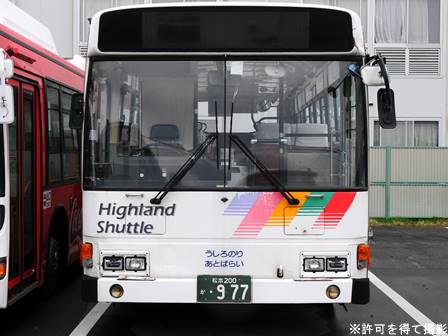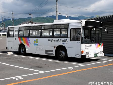 | 備考 | 97年式のブルーリボンHIMRですが、登録は年明け98年となっています。この車両の所属は09年シーズンより川中島バス扱いとなっていますが、新島々に常駐される松電の車両でした。当時は社番も松電のままとなっており滅多に長野には来ない車両でした。11年末に長野へ転属しましたが、この時に幕式からLEDへ換装されました。12年3月中には低公害車マークが現行仕様に変更され、リアのダイナミックストライプも追加されています。NBAマークの追加はそれより後である可能性があります。リアの低公害車マークは他車より大きいのが特徴です。長野転属時は松電社番でしたがその後消され、12年5月に現在の社番となりました。それまでの時期は便宜上40964号車として取り扱う事とします。 14年5月頃から白馬に常駐、夏には松本にいましたがそれまでは長野ナンバーで、9月か10月に松本ナンバーに再登録され、正式に転属を確認出来ました。15年秋までに丸型フォグ&それに対応するバンパーに交換されています。KC-代用の部品ではありません。16年頃には公式側に松本山雅FC応援広告が入っています。16年中旬には専修大学広告も入りました。17年初旬に選手大学広告撤去、ヘッドライトのロービームのみLED化されています。17年春以降に山雅広告が撤去されています。19年春までに長野・松本所属の路線車の多くが乗車扉脇へのNBAマーク貼り付けを実施。19年秋以降に定員表記が貼られ、20年春にアルピコ交通100周年ステッカーが貼られています。20年11月までに引退しています。 | |||||