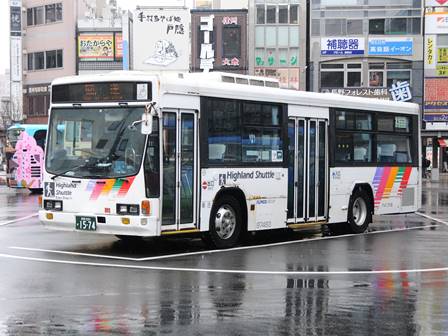 | 備考 | KC-代のワンステキュービックです。川バスにも同型車が在籍。09年夏に導入されました。しかし川バスの車両とは異なり松電の車両は「改」付きです。12年までに側面に広告枠が後付されています。16年に入りロービームのみLED化されています。松本の97・98年式の横浜キュービックは4台ありましたが、16年に3台が長野・茅野へ転属し、松本に最後に残った個体でした。16年下旬か17年初旬に新社番化されました。神奈中エアロスターと下3桁重複状態です。続けて2月中旬に長野に転属、長野ナンバーに再登録されています。若槻所属とみられます。17年夏までに非公式側広告枠が設置されました。17年9月頃にリア広告(シールタイプ)が貼られ、17年末までにはリア窓広告も貼られています。19年4月に長野支社のほぼ全ての車両にNBAマークが貼られ、8月後半に定員表示が掲出されました。20年春にアルピコ交通100周年ステッカーを貼り付け、22年5月までに剥がされました。 | |||||