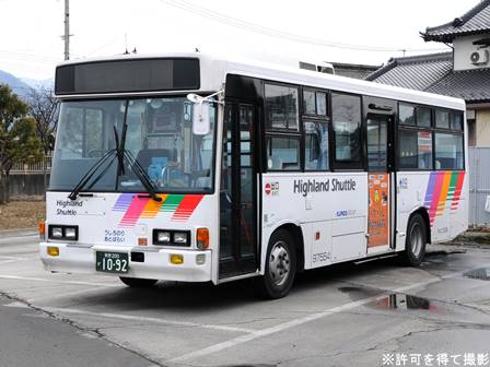 | 備考 | 11年の中古導入車です。11年7月下旬に運用開始した模様です。当初はしろりんに入ったり日によって運用が違ったりしていて広範囲の予備車的位置付けになっていたようです。座席につく取っ手がオレンジ色なのも特徴的です。 導入時は無社番状態でしたが、12年5月に現在の社番となりました。それまでの時期は便宜上41092号車として取り扱う事とします。 12年7月末か8月初旬にアルピコ自工のリア広告が入りました。16年4月に入り、川中島バス社名が消されてアルピコ交通社名1段表記になっています(他にも多数の車両が同様の変更を受けています)。16年12月中旬にEasy Step-inのピクトグラムが撤去されています。17年8月までにリア広告が撤去されました。18年夏までに非公式側に広告枠が設置されましたが詳細時期不明。19年4月に専修大学広告が入りましたが、NBAマークは貼られていません。同年8月後半に定員表示が掲出され、11月に専修大学広告が剥がされました。その跡地にNBAマークが貼られています。20年4月に専修大学広告が貼られ、同時期にアルピコ交通100周年ステッカーも貼られています(専修大学広告は20年11月頃解除)。21年4月も専修大学広告が貼られましたが、21年11月までに戸袋窓広告が専修大学から駒澤大学に変更されました。22年2月の入試日前後で解除されたものと思われます。22年4月にアルピコ100周年ステッカー解除。22年9月までにヘッドライトのロービームがバルブ交換によりLED化されました(詳細時期不明)。24年4月下旬に専修大学広告を施工。24年夏までに引退(専修大学広告は他車へ移っているものと思われます)。