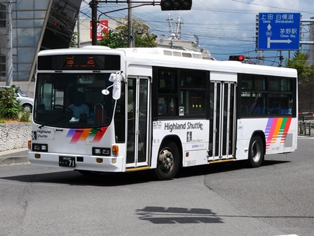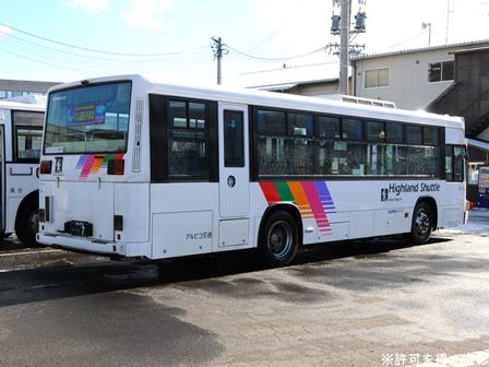 | 備考 | KC-代のキュービックです。川バスにも同型車が在籍。11年夏頃に導入されました。このグループがアルピコ交通発足後、松本支社で初めて導入された中古導入車とみられます。貸切運用対応のためにタコグラフを装備していました。12年10月からオレンジリボンラッピングとなりましたが、13年には解除されました(オレンジリボンは元々短期間)。16年には専修大学広告が入っていますが他の車両と違ってLEDヘッドランプ化されておらず、その時から茅野への転属が前提だった可能性があります。16年10月には茅野へ転属、少し期間を空けて10月末頃に再登録。12月上旬までに新社番に改番されています。18年までにヘッドライトのロービームのみLED化されています。19年4月に各支社の車両にNBAマークが貼られましたが、この車は何故か貼り付け位置を変更。20年春にアルピコ交通100周年ステッカーが貼られました。25年までに引退している模様。 | |||||