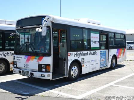 | 備考 | 14年7月に長野管内に導入された2台目となる中古のエルガミオです。99506号車とは異なりノンステ仕様となっています。東急バスからの中古車というのもアルピコでは非常に珍しいです。引退時は瀬田所属でしたが、新製配置から何度か所属は変わっている模様。17年3月〜4月前半のうちにリア広告枠と非公式側広告枠が設置され、17年10月までにヘッドライトのロービームのみLED化されました。続けて17年末頃に車椅子マークが貼られました。19年4月に専修大学広告が貼られ、8月後半に定員表示が掲出、同時期には中扉広告も施工。NBAマークは未貼付。19年11月に専修大学広告解除、20年春にアルピコ交通100周年ステッカーが貼られ、専修大学広告も施工(20年11月頃解除)。21年初旬に中扉広告が変更され、21年4月後半に専修大学広告が入りました(21年11月に解除)。22年4月にアルピコ100周年ステッカー解除、続けて同月下旬に専修大学広告を施工(22年11月までに解除)。23年4月後半に専修大学広告が入りました(23年11月までに解除)。24年4月下旬に専修大学広告を施工(同年秋に解除)。 | |||||