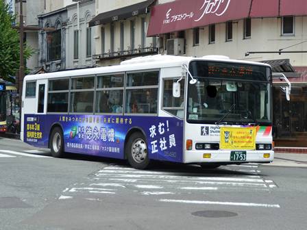 | 備考 | 19年10月にデビューした神奈中のノンステエアロスターです。KL-代の中古はM尺で導入されましたがPJ-代のこの車はK尺。ベンチレーターが弁当箱ではなくなり、標準の丸形になっているのが特徴です。また、これまでフロント窓下は基本的に白塗装だったのが、この車は黒塗装となっているためちょっと引き締まった印象です。尚、04年12月製造、05年初年度登録となっています。20年春にアルピコ交通100周年ステッカーを貼り付け、22年4月に剥がされました。22年11月頃に駒澤大学の戸袋縦帯広告が入りました(23年2月4日の試験日以降に解除)。23年9月頃に再度駒澤大学の戸袋縦帯広告施工(試験日以降に解除)。24年春頃に非公式側全幅に渡る徳永電機の広告が入りました(03465号車と同一)。 | |||||