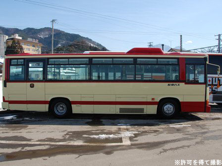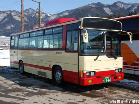 | 備考 | KC-代のワンステレインボーです。東武系ですが具体的にどこの事業者に居た車なのか詳細不明。11年下旬に湯田中に導入されたものと思われます。導入時の仕様は長野市内用と近いです。2353号車の置き換え用として17年のうちに飯綱へ転属しています。20〜22年頃にヘッドライトのロービームのみLED化。長電バスでは22年7月末から順次ベビーカー固定ベルトを取り付ける改造を行っており、完了した車両からベビーカーマークを追加されています。25年2月頃に引退した模様(公式Xより)。 | |||
