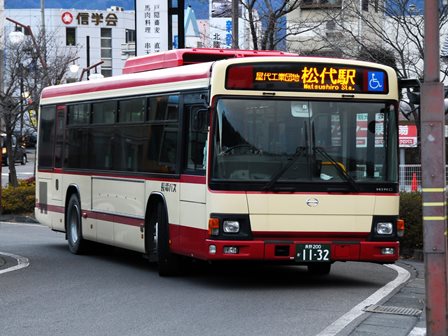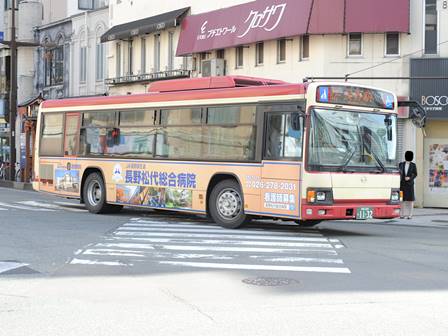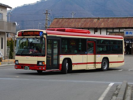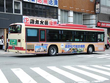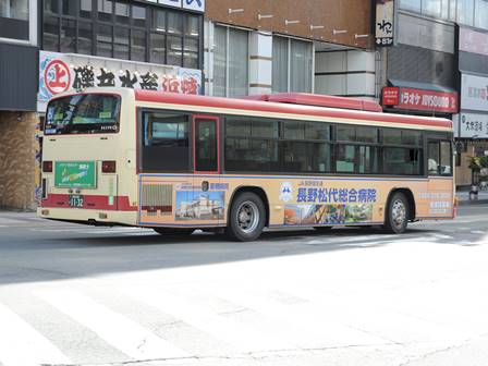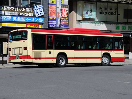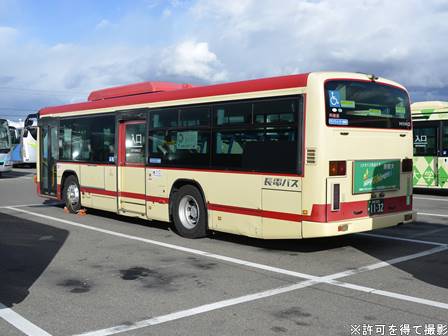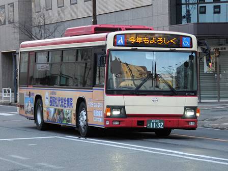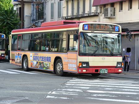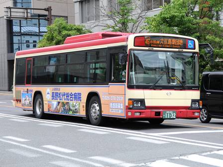 | 備考 | 12年3月末の長野電鉄屋代線廃止に伴う導入車です。長電バスで初のブルーリボンIIの導入となりました。1132〜1134号車の3台が纏めて導入されています。間合い運用で長野市街地でも時々見る事が出来ます。時期不明ですが中扉に広告が入っています。19年までにヘッドライトがLEDタイプの部品にASSY交換されました。19年秋に引退した1198号車からラッピングを引き継ぎました。長電バスでは22年7月末から順次ベビーカー固定ベルトを取り付ける改造を行っており、完了した車両からベビーカーマークを追加されています。23年4月初旬頃に路線バス全車両を対象としリアパネル(一部車両はリア窓内)へ「ゆずってくれてありがとう」ステッカーが追加されました。23年7〜8月頃に中扉窓へ入口表記が追加されました。24年7月に松代総合病院のラッピング解除。 | |||