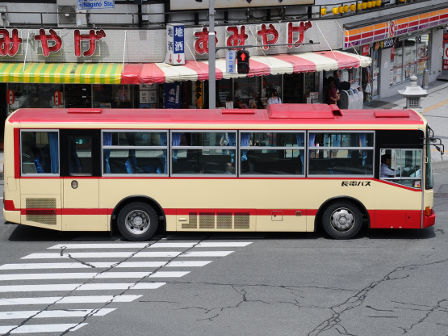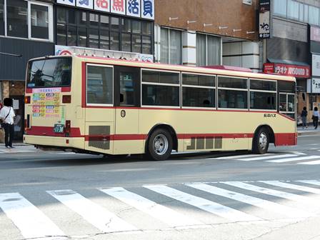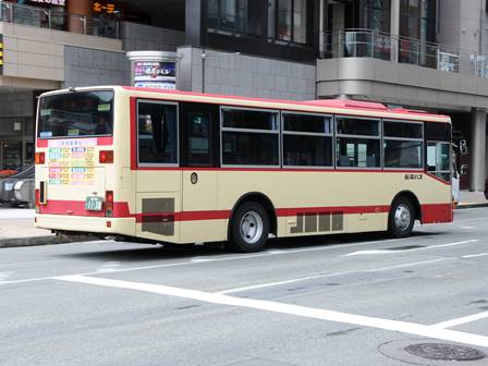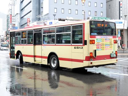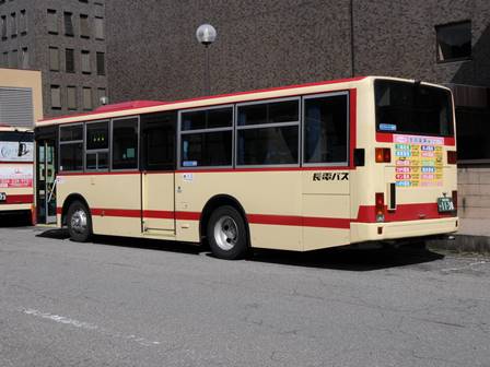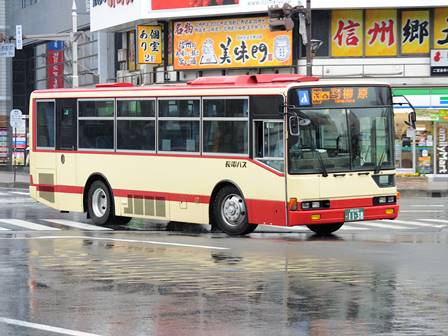 | 備考 | 12年3月末の長野電鉄屋代線廃止に伴う導入車です。ノンステ車ばかりの導入かと思いきやワンステのエアロスターまで導入されていました。当初は長野市街地路線に入る装備が足りず、屋代須坂線専用で運用されていました。なお、元事業者引退時の元局番はW-2774ですが、新製配置は上平間営業所で局番はH-2774でした。 17年初旬頃にリア広告が入りましたが詳細時期不明。18年秋までに側面とリアのガラスにスモークフィルムが貼られ、引き締まった外観になりました。18年11月までにヘッドライトのロービームのみLED化されています。長電バスでは22年7月末から順次ベビーカー固定ベルトを取り付ける改造を行っており、完了した車両からベビーカーマークを追加されています。23年4月初旬頃に路線バス全車両を対象としリアパネル(一部車両はリア窓内)へ「ゆずってくれてありがとう」ステッカーが追加されました。23年7〜8月頃に中扉窓へ入口表記が追加されました。 | |||