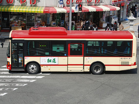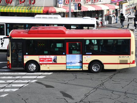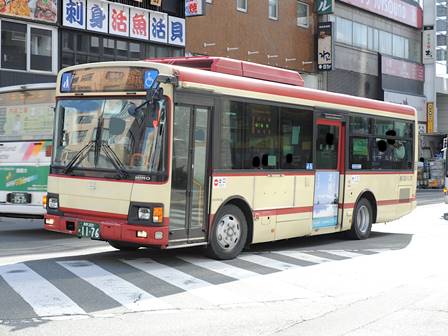 | 備考 | 12年9月頃に導入された車両です。半年前導入の綿内線用の1135号車と同型のように見えますが、燃費基準達成ステッカーがあるためSKG-代。時期不明ですが16年までに中扉広告が入っています。18年10月までにヘッドライトがLEDタイプの部品にASSY交換されました。長電バスでは22年7月末から順次ベビーカー固定ベルトを取り付ける改造を行っており、完了した車両からベビーカーマークを追加されています。23年4月初旬頃に路線バス全車両を対象としリアパネル(一部車両はリア窓内)へ「ゆずってくれてありがとう」ステッカーが追加されました。23年7〜8月頃に中扉窓へ入口表記が追加されました。 | |||