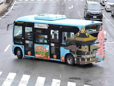 | 備考 | 12年10月1日から運行開始した2代目のぐるりん号です。アルピコ・長電各2台ずつ受け持ちです(21年に長電1台追加)。アルピコ受け持ち車にアルピコ社番が入った事から見ると初代とは運行委託の形態が多少異なるのかもしれません。バスラマVol.175でも長野市所有車両とはなっていません。 12年11月13日前後に公式側窓上に広告が入りました。ぐるりん号専用車は電動の1350号車を除いて16年9月半ばに車体のラッピングをやり直しています(部分的なのか全体なのかは不明)。17年下旬以降でスモールランプがLED化されている模様ですが詳細時期不明。18年10月にはヘッドランプのバルブがLED化されました。22年8月初頭にはリアのラッピングが一部欠けていました。 | |||