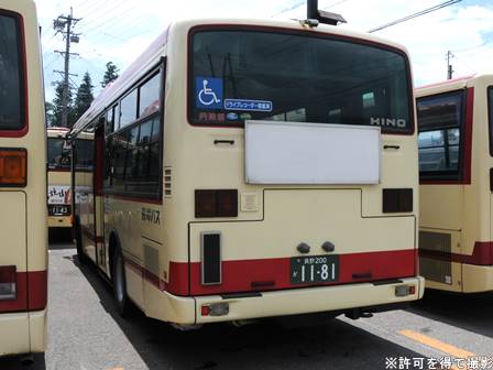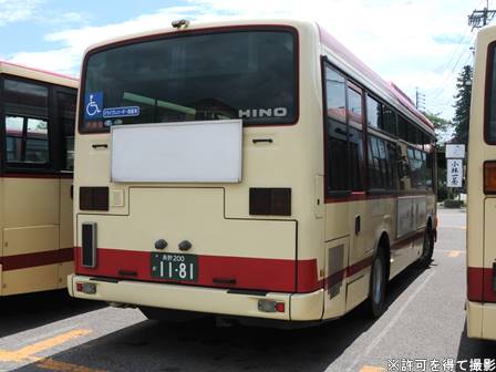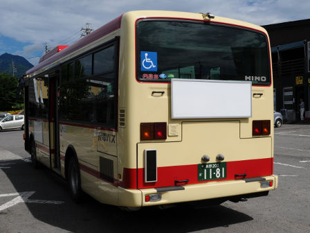| 備考 | 12年9月頃に導入された車両です。飯綱地区に初めて導入されたレインボーIIとなりますが、他地区と異なりワンステ仕様での導入です。配属は信濃町。20年以降にヘッドライトがLEDタイプの部品にASSY交換されました。 | |||