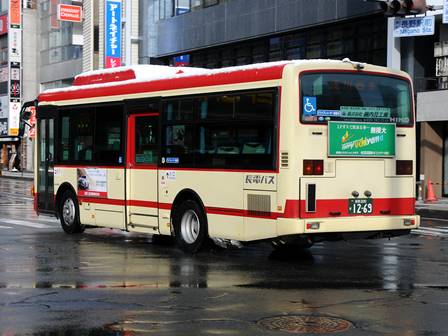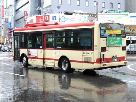 | 備考 | 13年9月に導入された車両です。レインボーIIノンステが継続的に導入されています。1268・1269号車は扉間の座席が両側ともロングシート仕様。18年12月までにヘッドライトがLEDタイプの部品にASSY交換されました。長電バスでは22年7月末から順次ベビーカー固定ベルトを取り付ける改造を行っており、完了した車両からベビーカーマークを追加されています。この車は8月に施工。23年4月初旬頃に路線バス全車両を対象としリアパネル(一部車両はリア窓内)へ「ゆずってくれてありがとう」ステッカーが追加されました。23年7月頃に中扉窓へ入口表記が追加されました。 | |||