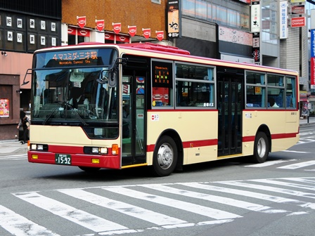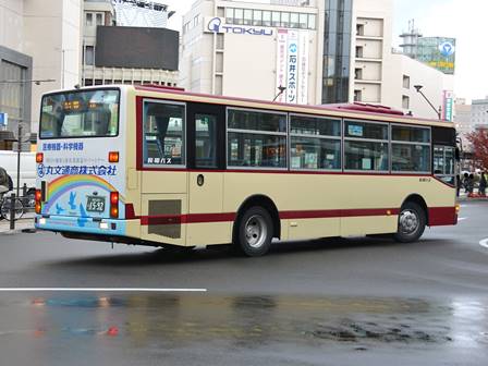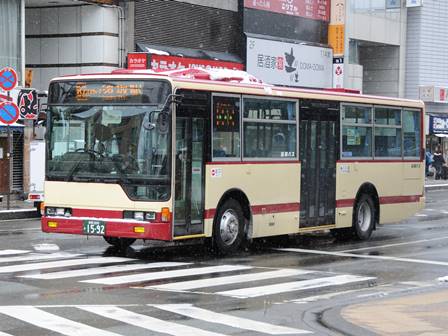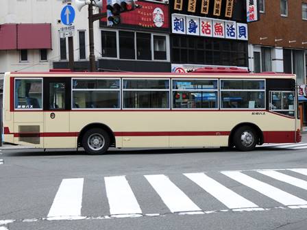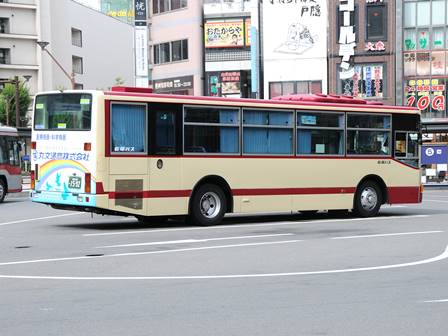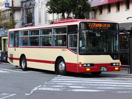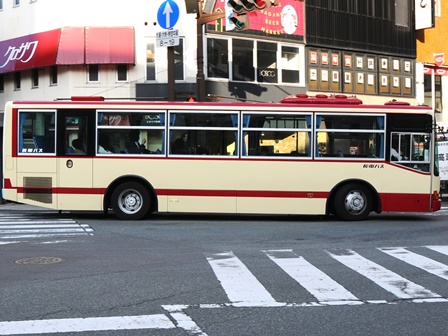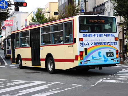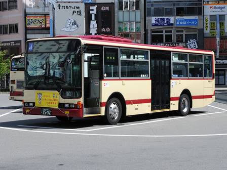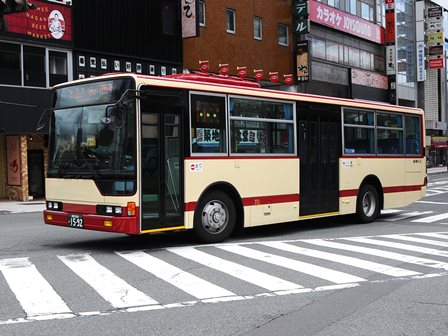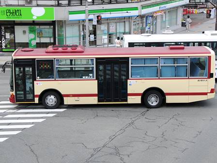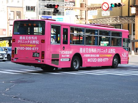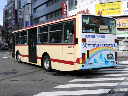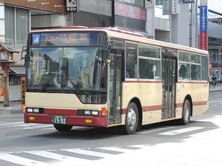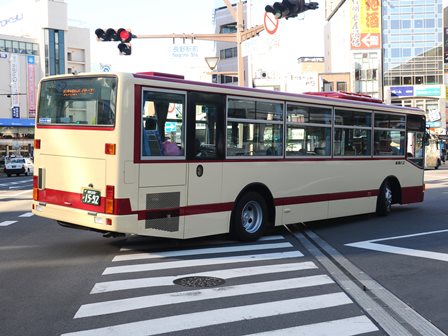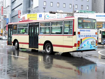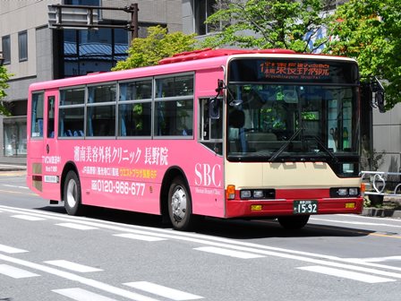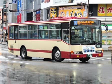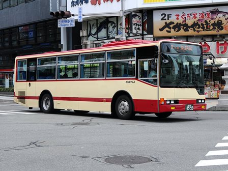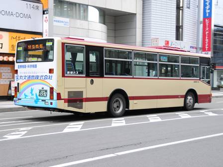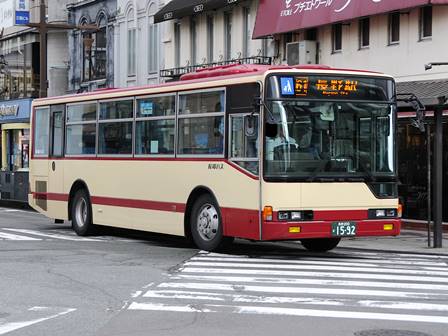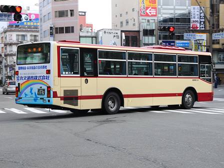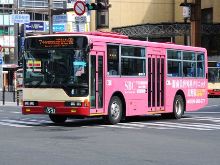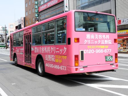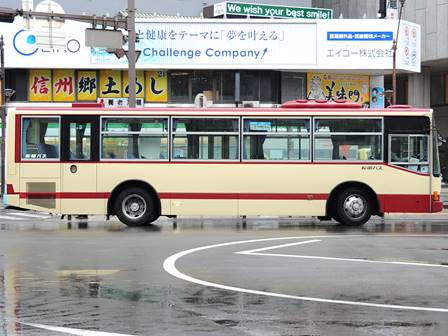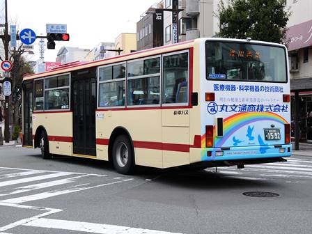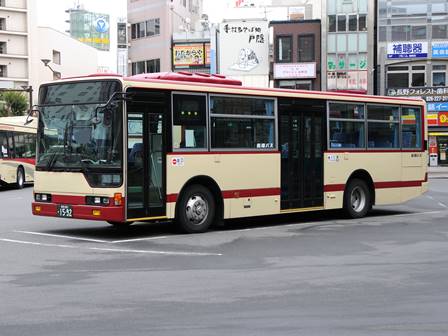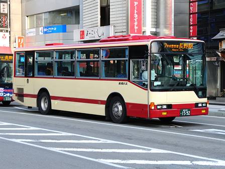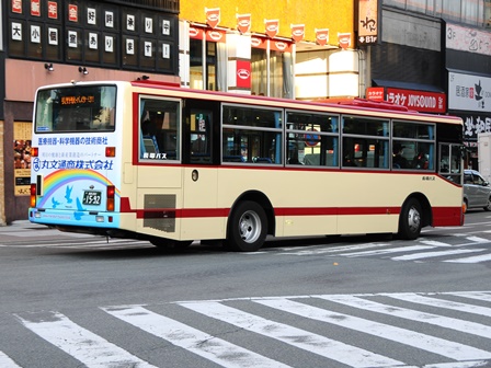 | 備考 | 1年以上の沈黙を破り長野に導入されたワンステエアロスター中古車です。17年6月前半に運用開始しました。エンジン出力は不明。元・相鉄バスの中古車は初導入とみられます。17年秋までに湘南美容外科クリニックの全面ラッピング仕様となりました。18年秋には解除され標準色に戻りましたが、窓内の社名カッティング文字は残されたままのため新仕様となります。尚、リアはアルピコ交通松本所属車にも存在する丸文通商の広告が入っています。18年11月までにヘッドライトのロービームのみLED化されています。21年秋までにリア広告の「の技術商社」の文字が消されています。長電バスでは22年7月末から順次ベビーカー固定ベルトを取り付ける改造を行っており、完了した車両からベビーカーマークを追加されています。この車は8月初頭までに掲出。23年4月初旬頃に路線バス全車両を対象としリアパネル(一部車両はリア窓内)へ「ゆずってくれてありがとう」ステッカーが追加されました。 | |||