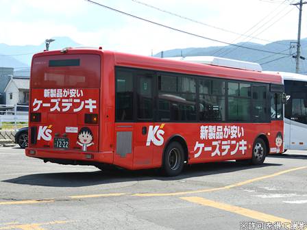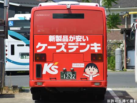 | 備考 | 17年夏に松本管内に導入された新車のエルガミオです。この車はアルピコ初の現行エルガミオとなります。ミッションはAMT。主に南部方面の路線に入っているところを見ます。19年春までに長野・松本所属の路線車の多くで中扉脇へのNBAマーク貼り付けが行われましたが、元々貼ってあったこの車は何故か貼り付け位置を変更。19年秋以降に定員表記が貼られました。20年春にアルピコ交通100周年ステッカーを貼り付け、22年4月頃に剥がされました。23年4月1日より松本市近郊の路線バスが松本市を運行主体とする公設民営バス「ぐるっとまつもとバス」になり、マークが貼られました。24年頃までにケーズデンキの全面ラッピング車となりました。リア窓まで覆うタイプです。 | |||||
