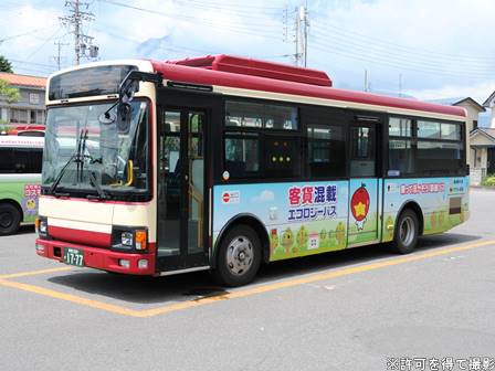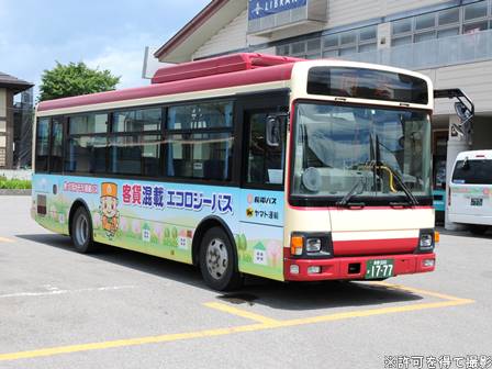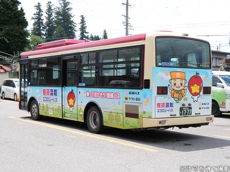 | 備考 | 19年11月末に登録されたとみられる中古レインボーII。導入時点で既にLEDヘッドライト部品に交換済み。三豊市コミュニティバスの中古車で、リア窓にカッティング文字を剥がした跡が残っています。配属先は信濃町。何故か前面の赤帯の塗り分け位置が異様に高く、変な仕上がりになっているのがこの車最大の特徴。詳細時期不明ですが、21年までに引退した358号車から客貨混載エコロジーバスの指定車両を引き継いでいるようで、ラッピングも施工されています。 | |||