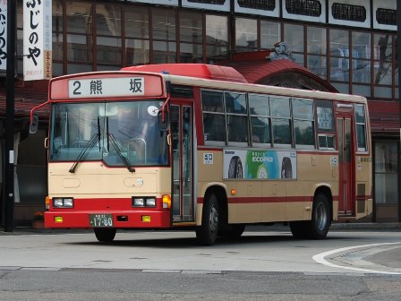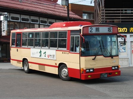 | 備考 | 信州バスに新製配置されたレインボーRJ。日野翼型エンブレムもありません。長電バスへの統合後もそのまま飯山に居たと思われますが、09年3月に突如として長野市内用として柳原に移籍しました。このグループはもともと市内用としても複数存在しますが、省略塗装となっているのが特徴でした。再塗装時期不明。 12年4月1日の信濃町新交通バスの発足前後に飯綱へ転属しています。発足により大きく車両運用が変わったため、飯綱管内の一般路線車両は全て別仕様として取り扱います。12〜13年頃までに引退している模様です。 | |||