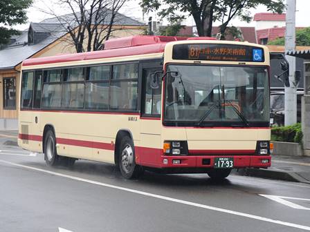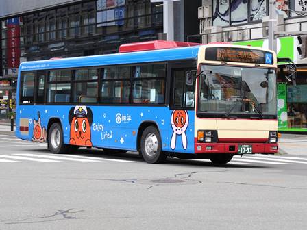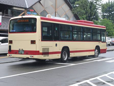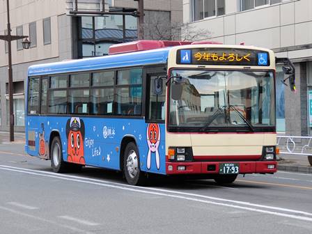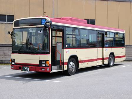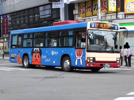 | 備考 | 20年3月に長野市内に導入された3台目のPJ-エルガ。船橋新京成から長電への中古流通は史上初。松戸新京成から来た1739号車と似ています。導入当初は船橋バス所属で、船橋新京成に統合されています。21年頃に綿半全面ラッピング化されました。長電バスでは22年7月末から順次ベビーカー固定ベルトを取り付ける改造を行っており、完了した車両からベビーカーマークを追加されています。23年4月初旬頃に路線バス全車両を対象としリアパネル(一部車両はリア窓内)へ「ゆずってくれてありがとう」ステッカーが追加されました。23年7月上旬頃に中扉窓へ入口表記が追加されました。 | |||