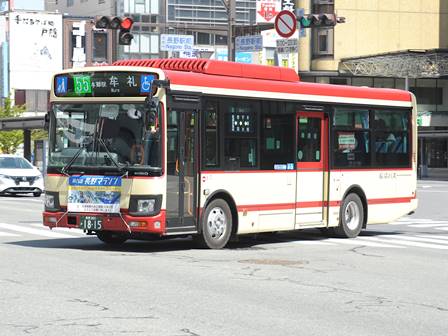 | 備考 | 20年12月に長野に導入された路線カラーの2KG-代レインボーです。ドライバー異常時対応システムEDSSを装備したモデルは型式末尾が4となりました。安全性能が高くなっています。長電バスの2020年式路線車は何とフルカラーLED式行先表示器を装備しています。長野市街地用の中型路線バスは中古を含めても16年の1515号車以来4年ぶりとなります。21年12月にリア広告が入り、22年8月頃に解除されました。長電バスでは22年7月末から順次ベビーカー固定ベルトを取り付ける改造を行っており、この車も追加施工されたと思われますが外観上に差が無いため画像の分類はしません。23年4月初旬頃に路線バス全車両を対象としリアパネル(一部車両はリア窓内)へ「ゆずってくれてありがとう」ステッカーが追加されました。23年7〜8月頃に中扉窓へ入口表記が追加されました。 | |||