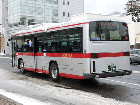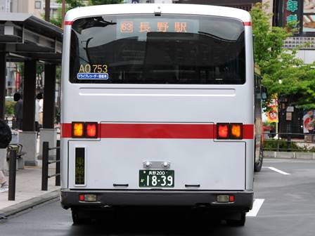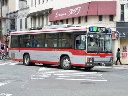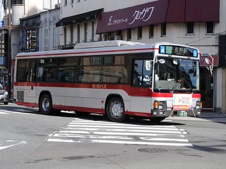 | 備考 | 21年7月6日より長野市内で運行を開始した元東急バスのブルーリボンIIです。長野―東京の特急バス60周年を記念し、東急バスの歴代カラーを纏った2台のうちの1台。こちらは「2号車」との事で、東急バス時代とまったく同じカラーリングとなっており、何と元社番もそのまま掲出。なお、長電バスへの東急バス中古は今回の2台が初めてでしょうか? 長電バスでは22年7月末から順次ベビーカー固定ベルトを取り付ける改造を行っており、完了した車両からベビーカーマークを追加されています。22年12月に部分フルカラーLED式の行先表示器に更新。23年4月初旬頃に路線バス全車両を対象としリアパネル(一部車両はリア窓内)へ「ゆずってくれてありがとう」ステッカーが追加されました。23年7〜8月頃に中扉窓へ入口表記が追加されました。 | |||