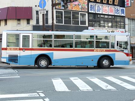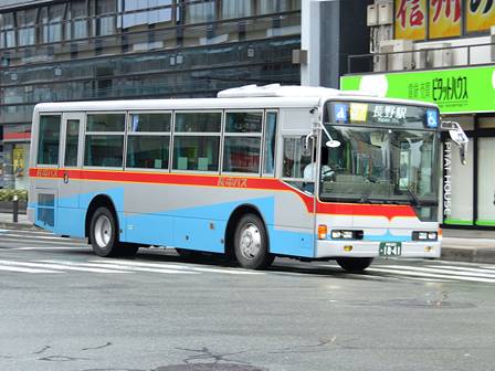 | 備考 | 21年7月6日より長野市内で運行を開始した元東急バスのエアロスターです。長野―東京の特急バス60周年を記念し、東急バスの歴代カラーを纏った2台のうちの1台。こちらが「1号車」との事で、水色の部分がとても特徴的。フロントには信濃路号のヘッドマーク付き。長電バスへの東急バス中古は今回の2台が初めてでしょうか? 22年2月に行先表示器がフルカラー化されました。22年6月までに戸袋窓に貼ってあった記念マークが剥がされました。長電バスでは22年7月末から順次ベビーカー固定ベルトを取り付ける改造を行っており、完了した車両からベビーカーマークを追加されています。23年4月初旬頃に路線バス全車両を対象としリアパネル(一部車両はリア窓内)へ「ゆずってくれてありがとう」ステッカーが追加されました。23年7〜8月頃に中扉窓へ入口表記が追加されました。 | |||