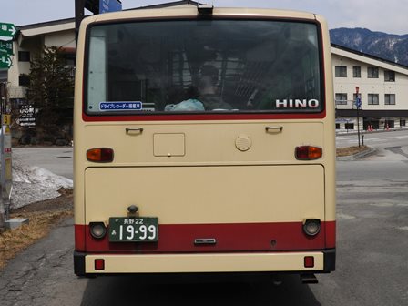 | 備考 | 志賀高原シャトル用の長尺ブルーリボンです。12年までに日野翼型エンブレムが撤去されてしまい、平凡な顔になってしまいました。2000号車LED化後も幕式のまま残っていましたが、18年春までにLED化されました。また、18年頃には長野へ移り、シャトルバス用として運用されています。18年冬には飯山に貸し出されています(他に1998(長野)、2267(湯田中)も飯山に貸し出し)。20年には長野に戻っていました。バスラマVol.175で「改」付きと判明。22年秋のバスまつりで展示されました。 | |||