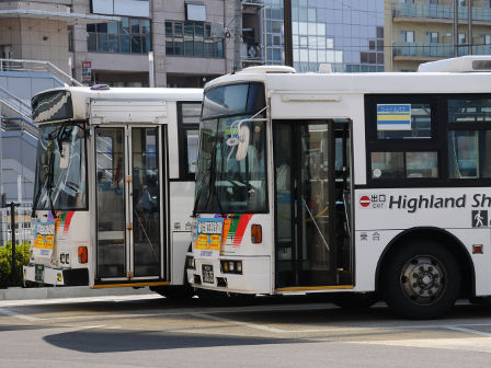 上田バスの丸目2灯レインボーRJ。これも可愛いです♪ | 草軽交通はエアロミディで参戦。意外な車種選択ですね。 |