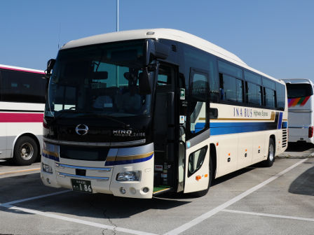千曲バスはなんとデビュー直後の千曲川ライナー2代目専用車1329号車を持ってきてくれました。これは予想外でした! | 伊那バスが持ってきたのは飯田―新宿線専用のSクラスシート車24186号車です。長野市で見れるのはバスまつりの時だけ。 |