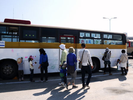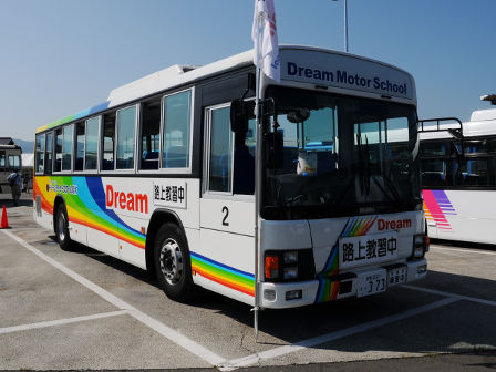 飛び道具はこちら。ドリームモータースクールのバス教習車。 こんなのまで一堂に会するのもバスまつりならではですね。 | 最後はバスまつり恒例のお絵かきバス。長電バスの601号車でした。駆け足で見て回って20分ほどで会場を後にしました。 |