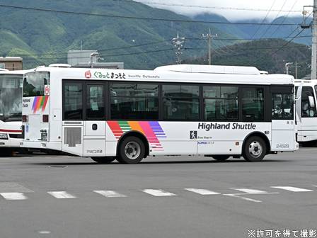 | 備考 | 24年12月に導入された中型の新車。当初よりぐるっとまつもとのロゴ入りです。定員表記の用紙がちょっと大きいような気がします(気のせいかもしれません)。型式末尾5の世代からトランスミッションはAMTが廃止となり6ATのみになっています。 | |||||