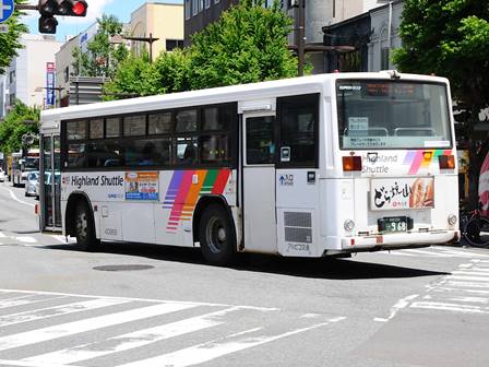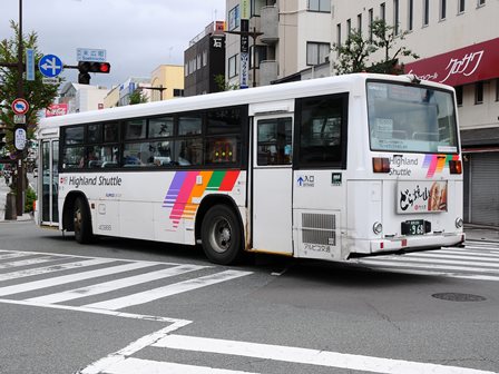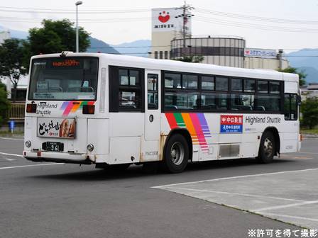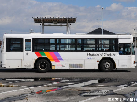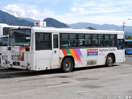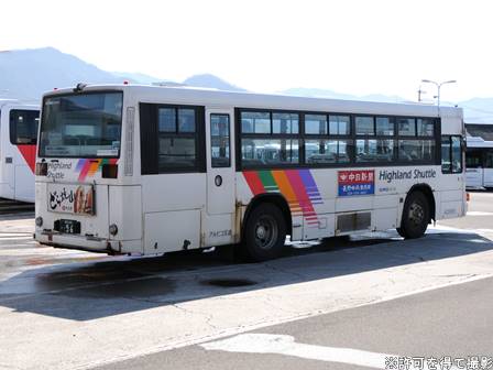 | 備考 | 09年夏の転入車です。この年の導入車からついにKC-代となりました。車体や窓の構造がU-代と変化しています。12年3〜6月のうちにNBAマークが入りました。 12年8月頃にリア窓広告が入りましたが、15年春までに撤去されています。16年春までに社名が1段表記に変更されていますが、公式側は「川中島バス」を消しただけでなく、「アルピコ交通」社名も場所が移動しています。当初長野所属でしたが、16年の中旬以降に戸隠に転属しています。16年12月までにリア広告枠が設置されています。18年1月中旬以降に公式側広告枠が追加され、同年4月頃までにヘッドライトのロービームのみLED化されています。19年4月には長野支社のほぼ全ての路線車両にNBAマークが貼られましたが、この車は元々あったものが剥がされずダブルNBAマーク状態です。同年8月後半に定員表示が掲出されました。20年春にアルピコ交通100周年ステッカーが貼られ、22年春頃に剥がされました。また、詳細時期不明ですがリアのライセンス灯がナンバー左右から上部に変更されています。22年8月に引退。 | |||||