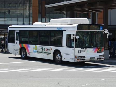 | 備考 | 当時最新のブルーリボンシティハイブリッドです。ワンステのHIMRはありましたが、ノンステは初となります。運用開始は1月26日ですが09年式です。 10年2月に「Hybrid」ロゴが幕板に増えました。12年2〜5月のうちにNBAマークが入りました。15年に入って非公式側に広告枠が設置されました。16年初旬までにリア広告枠が追加されています。続けて16年3月上旬に公式側広告(シールタイプ)も追加。この際、GIロゴが部分的に消されています。16年4月に入り、川中島バス社名が消されてアルピコ交通社名1段表記になっています(他にも多数の車両が同様の変更を受けています)。18年初旬までに公式側の広告シールが撤去され、広告枠に変更されています。18年春までにヘッドライトのロービームのみLED化されています。19年4月に長野支社のほぼ全ての車両にNBAマークが貼られた際に貼り付け済みだったこの車は貼り付け位置が変更された他、専修大学広告も貼られています(19年秋に解除)。同年8月後半に定員表示が掲出され、11月に専修大学広告が剥がされました。20年4月頃に専修大学広告(戸袋窓タイプ)が貼られ、同時期にアルピコ交通100周年ステッカーが貼られました。専修大学広告は20年11月に解除。21年4月後半に専修大学広告が入りました(21年11月までに解除)。22年4月にアルピコ100周年ステッカーが剥がされ、同月下旬に専修大学広告を施工、11月までに解除されています。23年4月下旬に専修大学広告を施工(23年11月後半に解除)。23年12月にリア窓広告が入りました。24年5月頃までに10396号車(元41007号車)から中部大学の戸袋縦帯広告を継承(デザインは刷新)しましたが、24年秋頃に引退。新デザインの中部大学の広告は05490号車に引き継がれました。