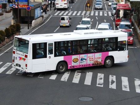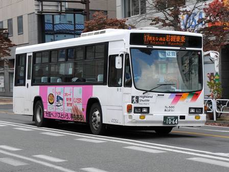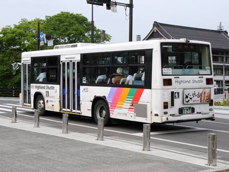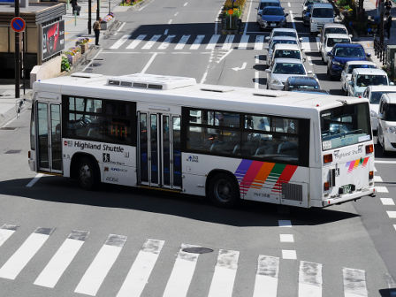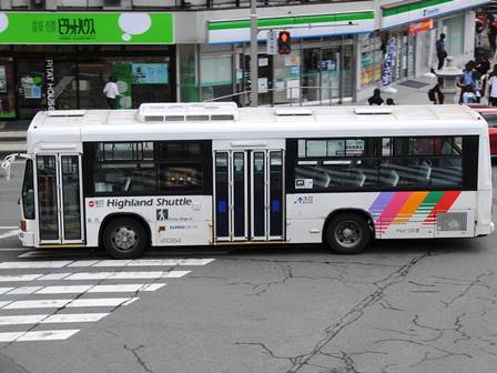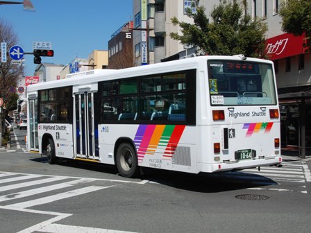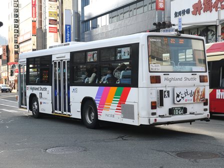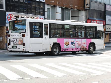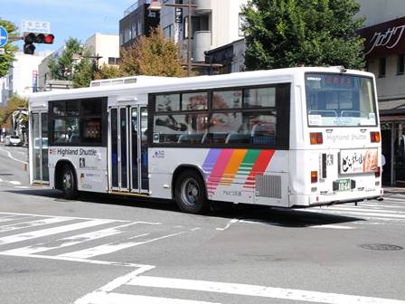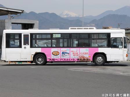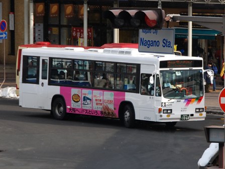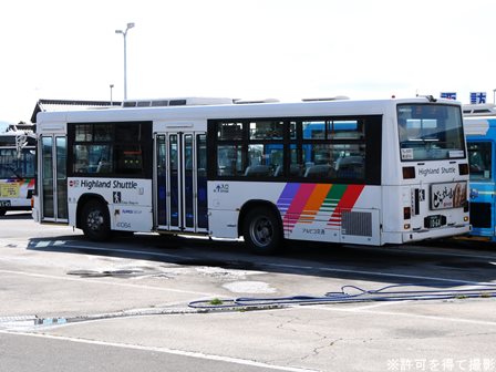 | 備考 | 10年の山陽からの転入車です。ワンステなので窓が大きく開放的です。エンジンは前後扉仕様と同じく高出力タイプ。導入自体は10年末ですが11年1月中旬に運用開始したとみられます。当初より非公式側には高速バス広告が入っています。松電のHIMR車に入っているのと同様のタイプです。また、「うしろのり あとばらい」表示はこれまでのプレート式ではなくステッカーとなっています。12月2〜4月のうちにNBAマークが追加されました。16年4月に入り、川中島バス社名が消されてアルピコ交通社名1段表記になっています(他にも多数の車両が同様の変更を受けています)。16年12月までにリア広告枠が設置されています。17年5月頃にヘッドライトのロービームのみLED化されています。19年4月には長野支社のほぼ全ての路線車両にNBAマークが貼られ、8月後半に定員表示が掲出されました。20年春にアルピコ交通100周年ステッカーを貼り付け、22年4月に剥がされました。 | |||||