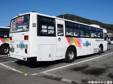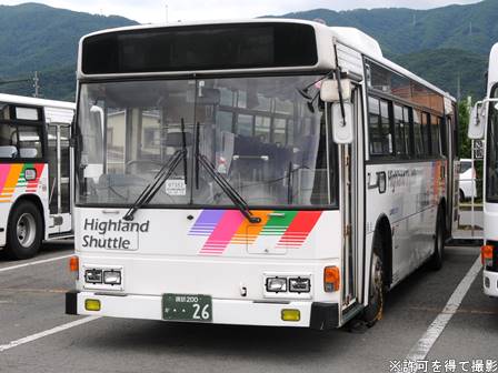 | 備考 | 97年式のブルーリボンHIMRです。11年下旬に新島々から茅野へ転属しているようです。しかし諏訪バスでは幕車で充分なため長野へ行った車両とは異なりLED化改造されていません。15年9〜10月頃に新社番化されています。17年末頃にヘッドライトのロービームのみLED化され、18年までに方向幕LED化されましたが詳細時期不明。20年春にアルピコ交通100周年ステッカーが貼られ、22年春頃に解除。23〜24年には引退している模様ですが詳細時期不明。 | |||||