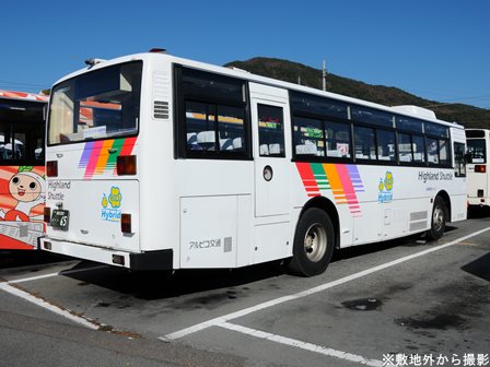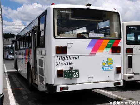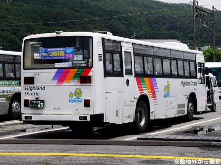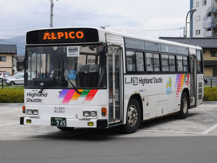 | 備考 | 97年式のブルーリボンHIMRです。この車両の所属は09年シーズンより川中島バス扱いとなっていますが、新島々に常駐される松電の車両でした。社番も松電のままとなっており、長野には来ない車両でした。12年1月に長野へ転属し、その時に幕式からLEDへ変更されました。低公害車マークも現行仕様に張り替えられているほか、リアにダイナミックストライプも追加されています。長野転属時は無社番状態でしたが、12年5月に現在の社番となりました。それまでの時期は便宜上40965号車として取り扱う事とします。尚、改番と前後してNBAマークが撤去されています。15年7月頃に非公式側に専修大学の広告が入り、16年2月までに撤去されています。 16年5月頃に茅野へ転属、諏訪ナンバーに再登録されています。17年頃に非公式側社名の貼付位置が変わっています。18年までにヘッドライトのロービームのみLED化されています。19年春に各営業所の路線車へのNBAマーク貼り付けを実施。20年春にアルピコ交通100周年ステッカーが貼られました。21年頃までに引退している模様ですが詳細時期不明。 | |||||