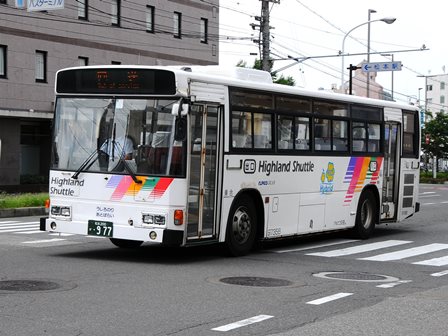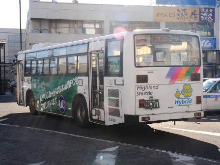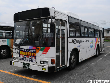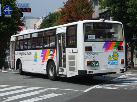 | 備考 | 97年式のブルーリボンHIMRですが、登録は年明け98年となっています。この車両の所属は09年シーズンより川中島バス扱いとなっていますが、新島々に常駐される松電の車両でした。当時は社番も松電のままとなっており滅多に長野には来ない車両でした。11年末に長野へ転属しましたが、この時に幕式からLEDへ換装されました。12年3月中には低公害車マークが現行仕様に変更され、リアのダイナミックストライプも追加されています。NBAマークの追加はそれより後である可能性があります。リアの低公害車マークは他車より大きいのが特徴です。長野転属時は松電社番でしたがその後消され、12年5月に現在の社番となりました。それまでの時期は便宜上40964号車として取り扱う事とします。 14年5月頃から白馬に常駐、夏には松本にいましたがそれまでは長野ナンバーで、9月か10月に松本ナンバーに再登録され、正式に転属を確認出来ました。15年秋までに丸型フォグ&それに対応するバンパーに交換されています。KC-代用の部品ではありません。16年頃には公式側に松本山雅FC応援広告が入っています。16年中旬には専修大学広告も入りました。17年初旬に選手大学広告撤去、ヘッドライトのロービームのみLED化されています。17年春以降に山雅広告が撤去されています。19年春までに長野・松本所属の路線車の多くが乗車扉脇へのNBAマーク貼り付けを実施。19年秋以降に定員表記が貼られ、20年春にアルピコ交通100周年ステッカーが貼られています。20年秋までに引退しています。 | |||||