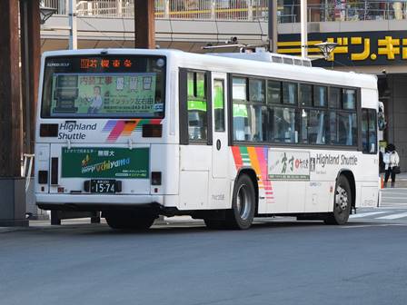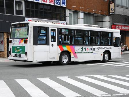 | 備考 | KC-代のワンステキュービックです。川バスにも同型車が在籍。09年夏に導入されました。しかし川バスの車両とは異なり松電の車両は「改」付きです。12年までに側面に広告枠が後付されています。16年に入りロービームのみLED化されています。松本の97・98年式の横浜キュービックは4台ありましたが、16年に3台が長野・茅野へ転属し、松本に最後に残った個体でした。16年下旬か17年初旬に新社番化されました。神奈中エアロスターと下3桁重複状態です。続けて2月中旬に長野に転属、長野ナンバーに再登録されています。若槻所属とみられます。17年夏までに非公式側広告枠が設置されました。17年9月頃にリア広告(シールタイプ)が貼られ、17年末までにはリア窓広告も貼られています。19年4月に長野支社のほぼ全ての車両にNBAマークが貼られ、8月後半に定員表示が掲出されました。20年春にアルピコ交通100周年ステッカーを貼り付け、22年5月までに剥がされました。 | |||||