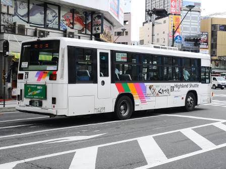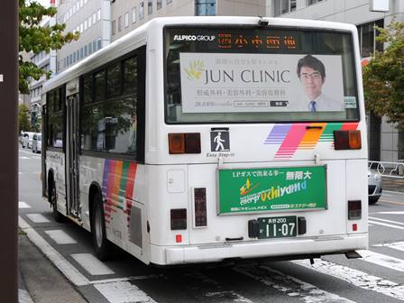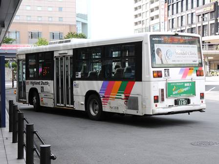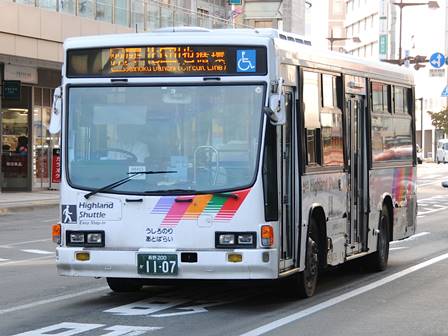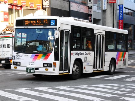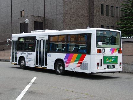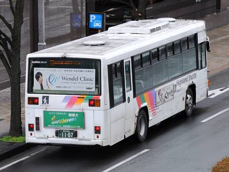 | 備考 | 11年の横浜市交からの転入車です。ワンステなので窓が大きく開放的です。11年9月下旬に運用開始した模様です。12年2〜5月のうちに非公式側広告枠が付きました。 導入時は無社番状態でしたが、12年5月に現在の社番となりました。それまでの時期は便宜上41107号車として取り扱う事とします。詳細時期不明ですが16年にロービームのみLED化されています。17年末〜18年初旬頃に車椅子マークが貼り付けられました(18/1/10には貼り付け済み)。18年10月までにリア窓広告が貼られています。19年4月に長野支社のほぼ全ての車両にNBAマークが貼られ、8月後半に定員表示が掲出されました。19年秋以降にリア窓広告が変更されていますが詳細時期不明。20年春にアルピコ交通100周年ステッカーが貼られ、22年春頃に剥がされました(詳細時期不明)。 | |||||