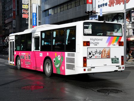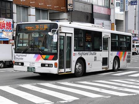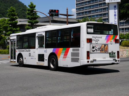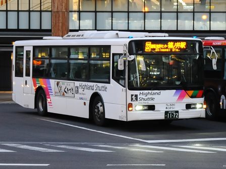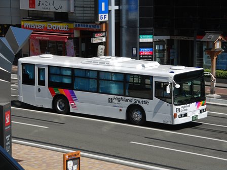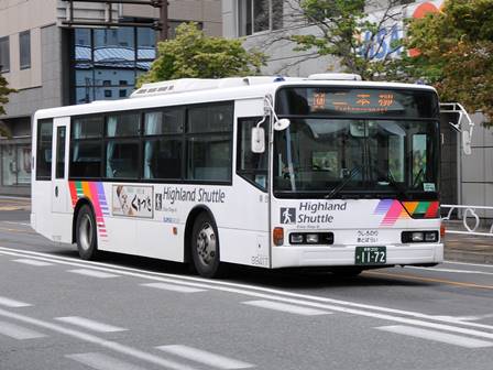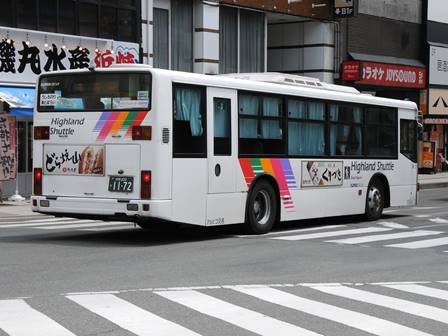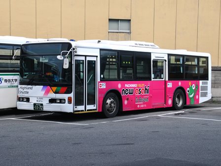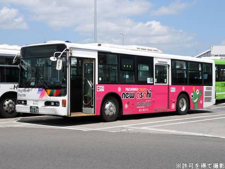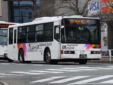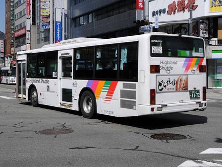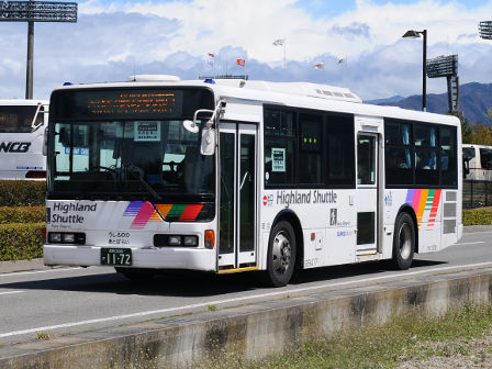 | 備考 | 12年に京王から導入された中古車です。京王でKC-代のエアロスターノンステは1999年式しか導入されていません。フォグ無しバンパーやKC-代で中扉が引戸&空調が真ん中というのも特徴です。屋根にあるフロントのマーカーランプは橙から青に交換されています。運用開始は8月前半、ラッピングなしの通常車両です。12年9月下旬に非公式側広告が設置されました。時期不明ですが15年までにリア広告が新設されています。17年初旬に公式側窓下のほぼ全長に渡るパチンコニューアサヒ広告が入りました。18年秋頃にヘッドライトのロービームのみLED化されています。19年4月に長野支社のほぼ全ての車両にNBAマークが貼られ、8月後半に定員表示が掲出されました。21年2月中旬にラッピングが解除されました。20年春にアルピコ交通100周年ステッカーが貼られました。21年2月までに公式側広告が解除となり、4年ぶりにアルピコカラーに戻りました。22年4月にアルピコ100周年ステッカーが剥がされました。24年夏に引退。 | |||||