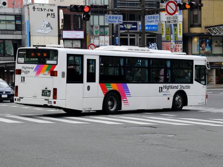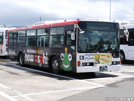 | 備考 | 12年の転入車です。京王からの導入車です。京王でKC-代のエアロスターノンステは99年式しか導入されていません。フォグ無しバンパーやKC-代で中扉が引戸&空調が真ん中というのも特徴です。屋根にあるフロントのマーカーランプは橙から青に交換されています。運用開始は11月下旬頃、ラッピングなしの通常車両でした。15年6〜7月頃に非公式側に専修大学の広告が入り、16年2月までに撤去されています。17年初旬にパチンコニューアサヒの全面ラッピング仕様になりましたが、側面社番のフォントが違います。恐らくラッピングデザイン自体に入っているものと思われます。19年4月に長野支社のほぼ全ての車両にNBAマークが貼られ、8月後半に定員表示が掲出されました。20年春にアルピコ交通100周年ステッカーが貼られました。21年2月前半のうちに全面ラッピングが解除されアルピコカラーに戻りましたが、3月頃には八十二銀行の全面ラッピングになりました(初代)。22年4月までにラッピング解除となりました(アルピコ100周年ステッカーも同時期に解除)。22年7月頃までに八十二銀行の二代目ラッピング化。23年3月までに解除、23年9月頃に非公式側窓下をフルに使うFICTの広告が入りました(24年1月までに解除)。24年3月までにリア広告が入りました(25年3〜4月頃に解除)。 | |||||
