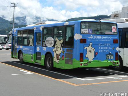 | 備考 | 12年秋の転入車です。京王からの導入車です。京王でKC-代のエアロスターノンステは99年式しか導入されていません。フォグ無しバンパーやKC-代で中扉が引戸&空調が真ん中というのも特徴です。屋根にあるフロントのマーカーランプは橙から青に交換されています。運用開始は11月下旬頃、JAと県警の交通安全ラッピング車でした。 13年下旬にはサントリーの広告に変更されています。この車はまだ標準色になった事は無いものと思われます。時期不明ですが15年までにリアのバンパー角のラッピング撤去。15年前半にはロービームのみLED化されています。17年3月頃にフロントとリアに車椅子マーク(青色)が追加されました。また、リアバンパー角もラッピングが行われましたが、全体をやり直したのか部分的なのか不明。19年春までに長野・松本所属の路線車の多くで中扉脇へのNBAマーク貼り付けが行われましたが、元々貼ってあったこの車は何故か貼り付け位置を変更。19年秋以降に定員表記が貼られ、20年春にアルピコ交通100周年ステッカーが貼られています。21年10月末or11月あたまに長野県JAバンクの全面ラッピングに変更されました(ラッピング内容から、この時点でアルピコ100周年ステッカーは剥がされているものと思われます)。23年4月1日より松本市近郊の路線バスが松本市を運行主体とする公設民営バス「ぐるっとまつもとバス」になり、マークが貼られました。23年11月の松本管内全路線キャッシュレス決済対応化のため、夏以降にキャッシュレス端末を搭載。25年5月にラッピング解除、長野の99415号車と同じくアルピコカラーの全面ラッピング仕様に。これはこの車がフロント以外アルピコカラーを施さずに導入されており、後先が短い車両に純正の塗装を施すのを避けるためとみられます。 | |||||