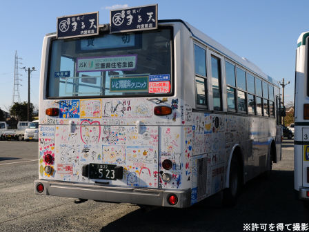 備考 | 7E車体のLT。非公式側にはパートラッピングが施されています。この車は三交伊勢志摩交通の所属となっているようです。15年までにお絵かきラッピング化されています。また、15年にはヘッドライト(ロービーム)LED化・デイライト設置されています。基本的に若い車両にしか施工されていないヘッドライトLED化ですが、三交伊勢志摩交通最古参の3741・3743号車は異例中の異例で施工。16年に別のお絵かきバスになったものの、11月頃に引退。 |