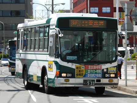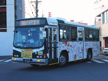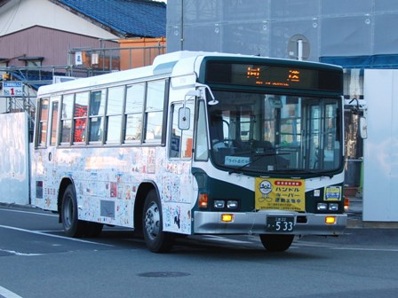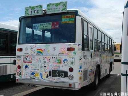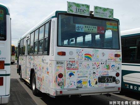 備考 | キュービック車体のLTです。以前は標準色でしたが、10年にお絵かきバスになりました。いつのイベントかなど、詳しくは分かりませんが、津まつりという文字が見えるので恐らく津まつりの時でしょう。 12年には近鉄塩浜工場で開催されたイベントで新たにお絵かきバスになりました。1台が2回お絵かきバスになるのはレア。12年9月頃に引退した模様です。 |